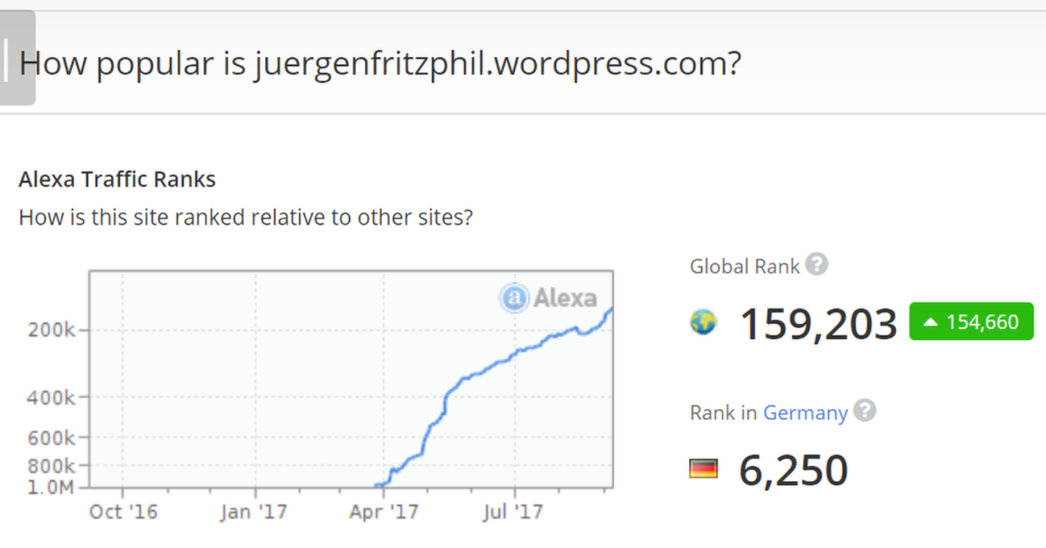 Nach sensationellem Anstieg der Leserzahlen in den letzten Monaten erhält Jürgen Fritz Blog seine eigene Domain. Aus juergenfritzphil.wordpress.com wird: juergenfritz.com.