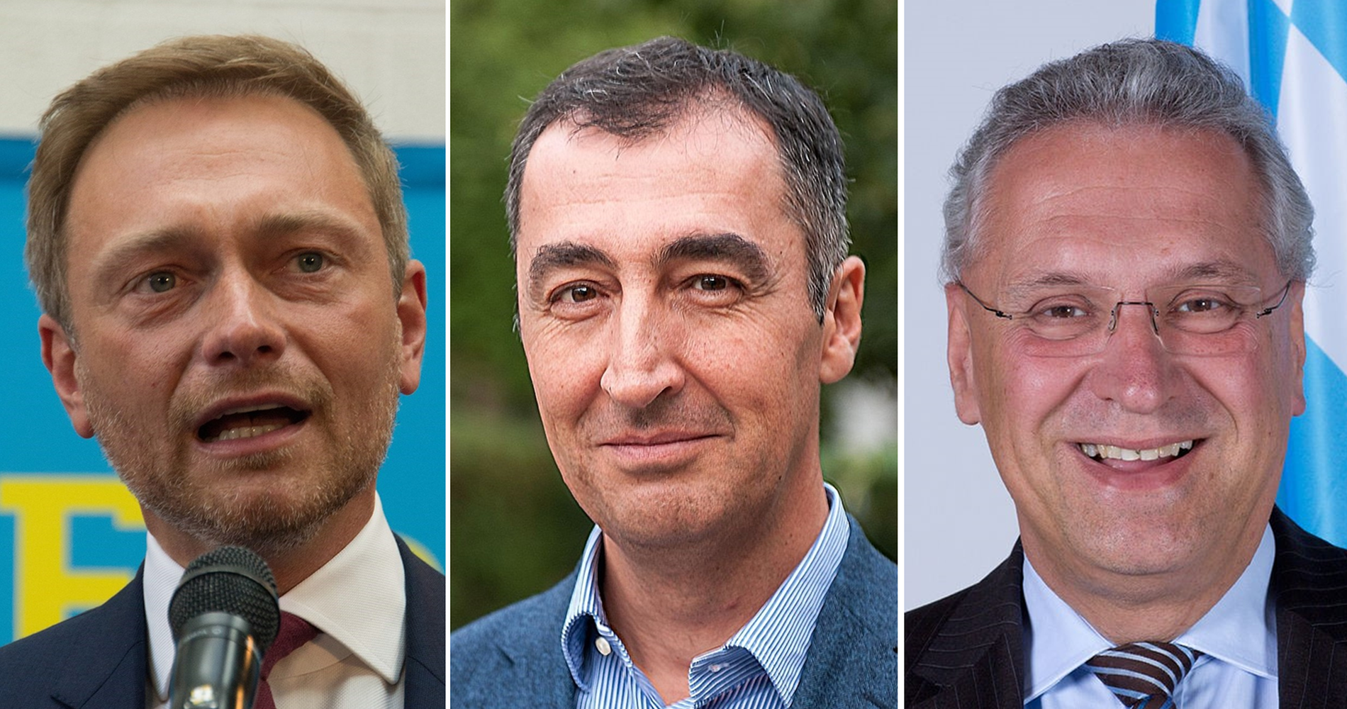 Bilder: Christian Lindner by Olaf Kosinsky [CC BY-SA 3.0 de (https://creativecommons.org/licenses/by-sa/3.0/de/deed.en)%5D, via Wikimedia Commons, Cem Özdemir by Ralf Roletschek [GFDL 1.2 (http://www.gnu.org/licenses/old-licenses/fdl-1.2.html)%5D, via Wikimedia Commons und Joachim Herrmann by Sven Teschke / , via Wikimedia Commons