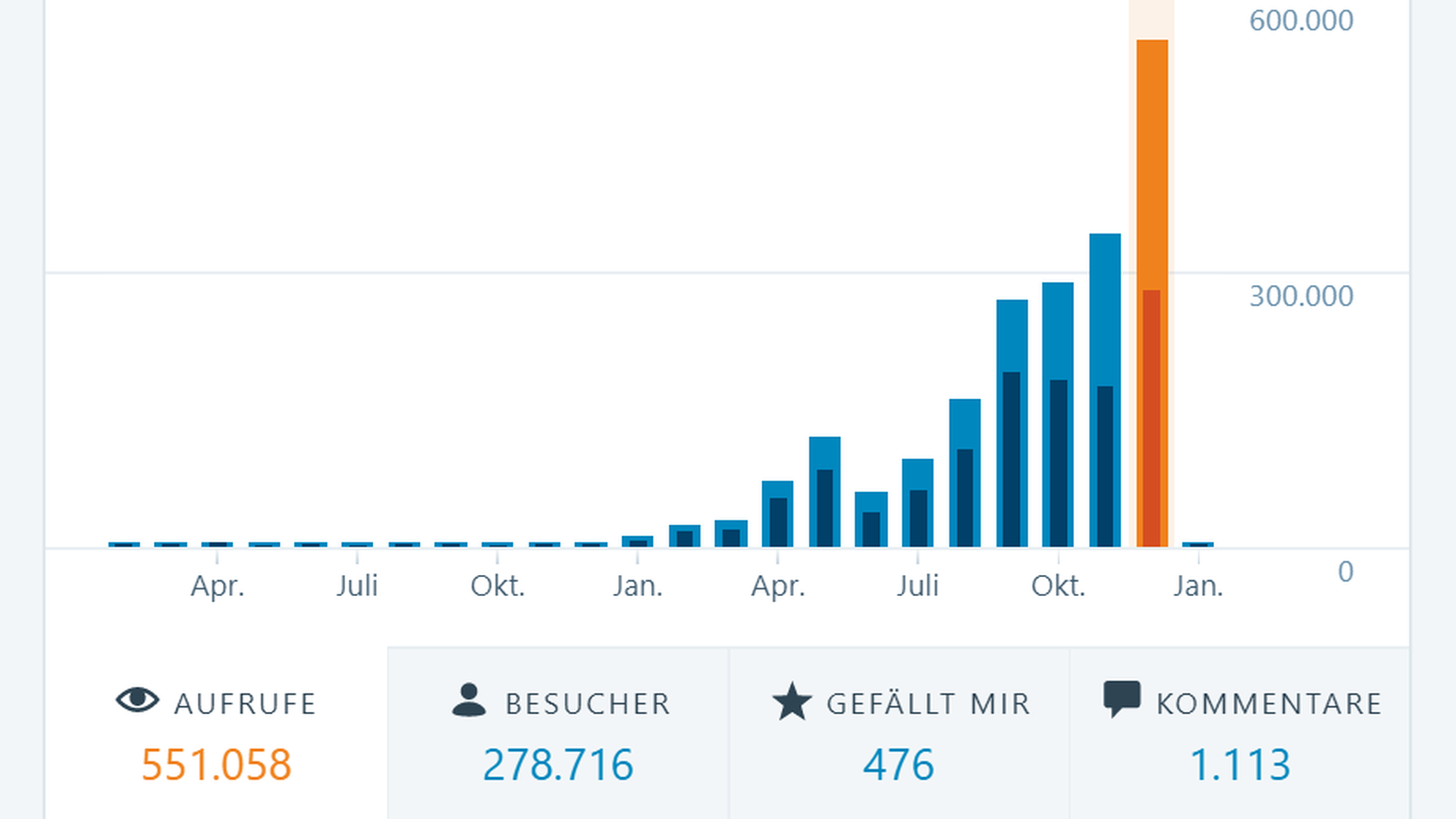 350.000 Seitenaufrufe/Leser war das Ziel für den Dezember. Das wäre erneut ein neuer Rekordmonat gewesen. Der zehnte in 2017. Doch es wurden keine 350.000, es wurden über 550.000.