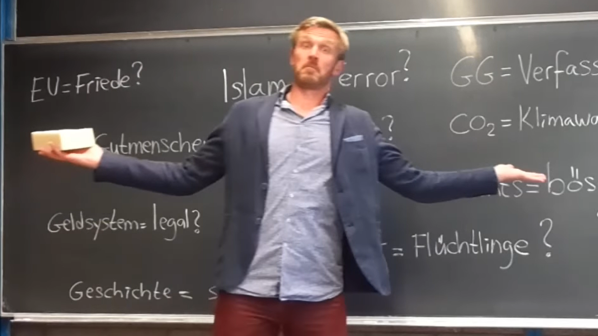 …so habe ich das noch gar nicht gesehen… ich finde vieles gut, was er schreibt und Einiges eben nicht, dass ist doch aber überall so…wann ist man beim Thema Politik mal mit jemanden 100 % einer Meinung ? selten…ich stehe z.B. voll hinter der AfD aber alles , was da gesagt wird, gefällt mir auch nicht …diesen Lehrer in die Reichsbürger-Schublade zu stecken, finde ich nicht richtig …wollten wir nicht, dass jeder seine Meinung haben und sagen darf, auch wenn sie uns nicht gefällt oder wir das anders sehen ? UND, können wir es uns im Moment leisten, Menschen auszugrenzen ?