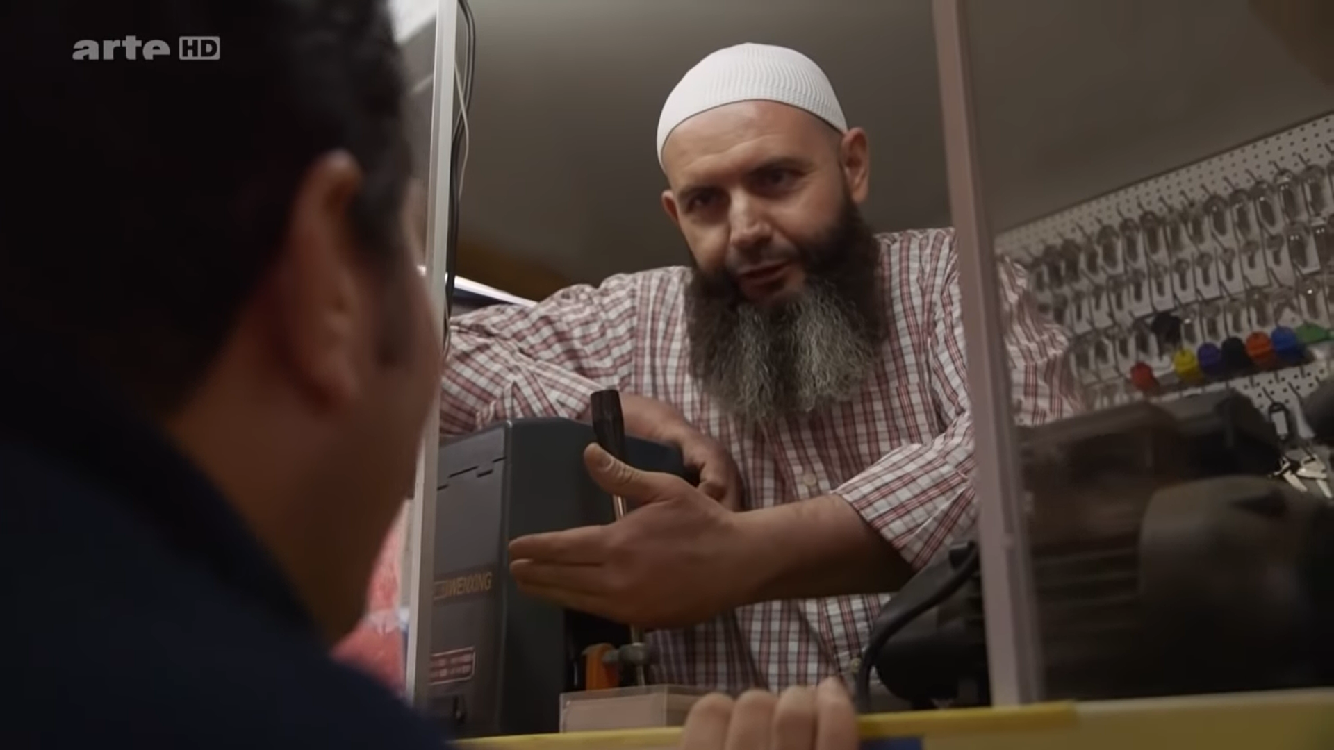 In der folgenden Szene fragen Sie, Nazan Gökdemir, einen Mann mit Bart, der in einem Wagen mit der Aufschrift „Schlüsseldienst“ arbeitet, zunächst, ob die islamische und die westliche Lebensordnung zusammenpassen würden. Daraufhin antwortet er, der Islam habe alles, was der Westen heute habe, schon vor 1.400 Jahren gehabt, vor allem Frieden für Frauen und Frieden für die Menschen. „Aha!“, ist man versucht zu sagen. Es ist erstaunlich, wie wenig Muslime über die gewaltsame Ausbreitung des Islam über Jahrhunderte, die brutale Unterwerfung aller anderen Kulturen um sich herum und über die mehr als 1.300 jährige Geschichte der islamischen Sklaverei wissen, die alles übertrifft, was die Menschheit jemals gesehen hat. Aber gut, zurück zu Ihrem Gespräch.