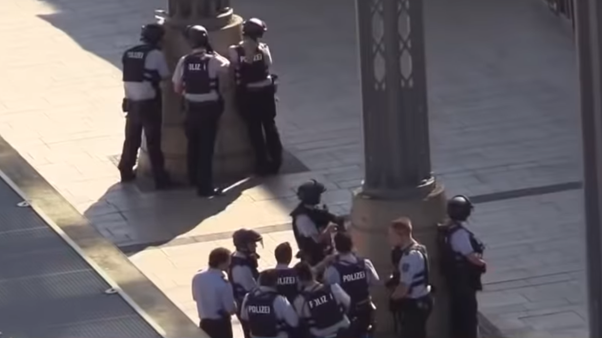 Schließlich entschließt sich das SEK gegen 15 Uhr, also nach über zwei Stunden, einzugreifen und die Geisel zu befreien. Die Beamten feuern zunächst zwei Blendgranaten ab. Die Explosionen sind auf dem Breslauer Platz auf der Bahnhofsrückseite deutlich zu hören. Als der IS-Sympathisant das SEK sieht, versucht er die in Geiselhaft genommenen Frau, die er bereits mit Benzin übergossenen hat, anzuzünden, hält ihr ein entflammtes Feuerzeug an den Kopf.