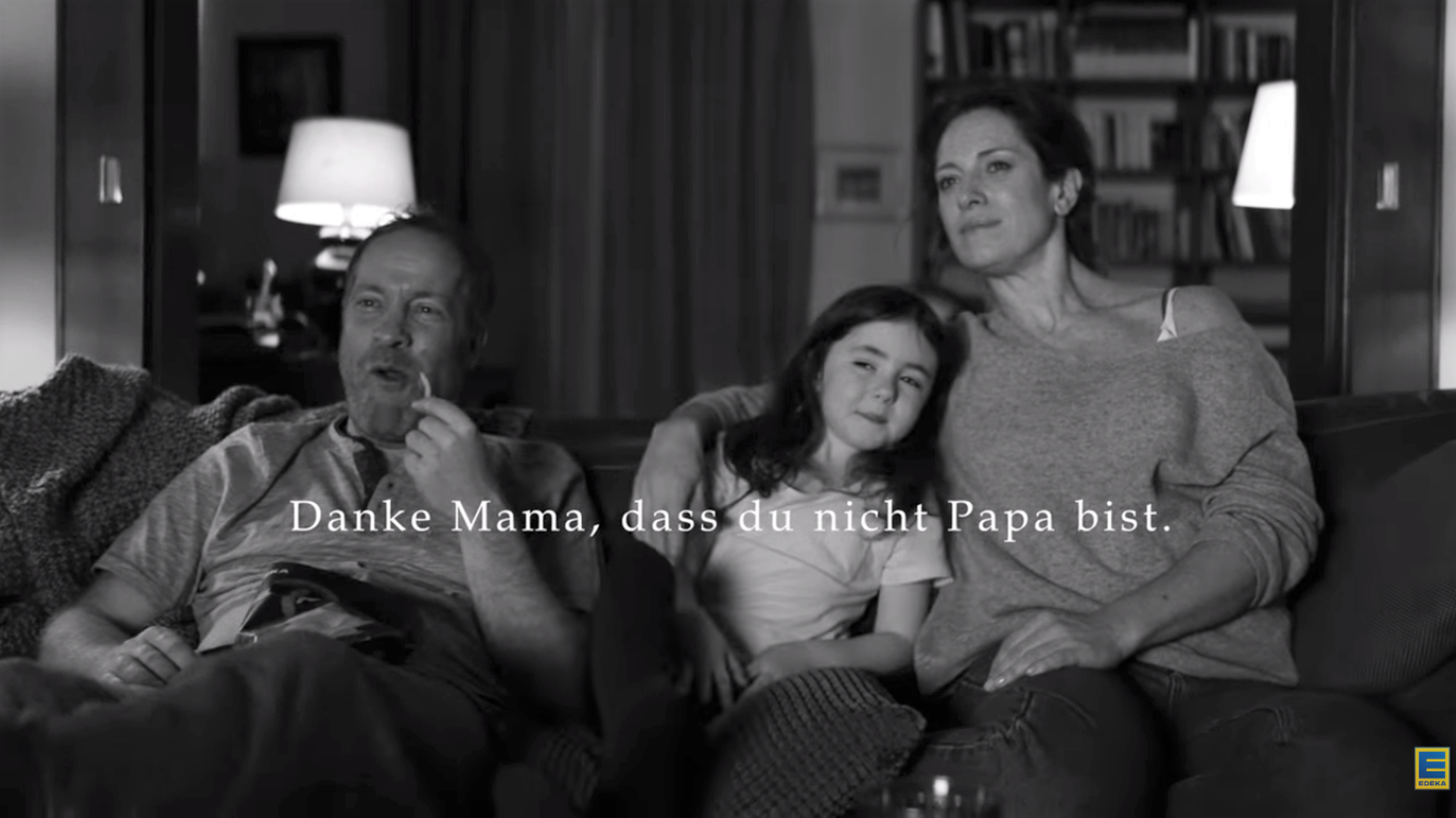 Edeka/Jung v. Matt kalkulieren offenbar damit, dass ein Dank an Mütter bei ihnen besser ankommt, wenn zugleich Väter lächerlich gemacht und abgewertet werden. Der Werbespot zielt so offen auf tiefe Ressentiments … Seine Macher müssen, wenn sie sich Erfolg erhoffen, davon ausgehen, dass einem Großteil der Mütter die Abwertung der Väter wichtiger ist als die eigene Aufwertung: denn mit Ausnahme der wenigen letzten Sekunden kreist dieser ganze Muttertags-Spot schließlich ausschließlich um Väter.
