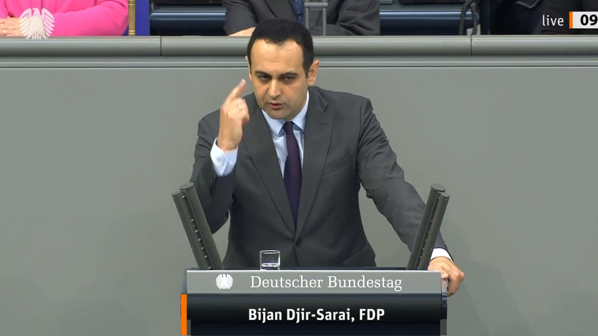Bijan Djir-Sarais Rede in Bild und Ton