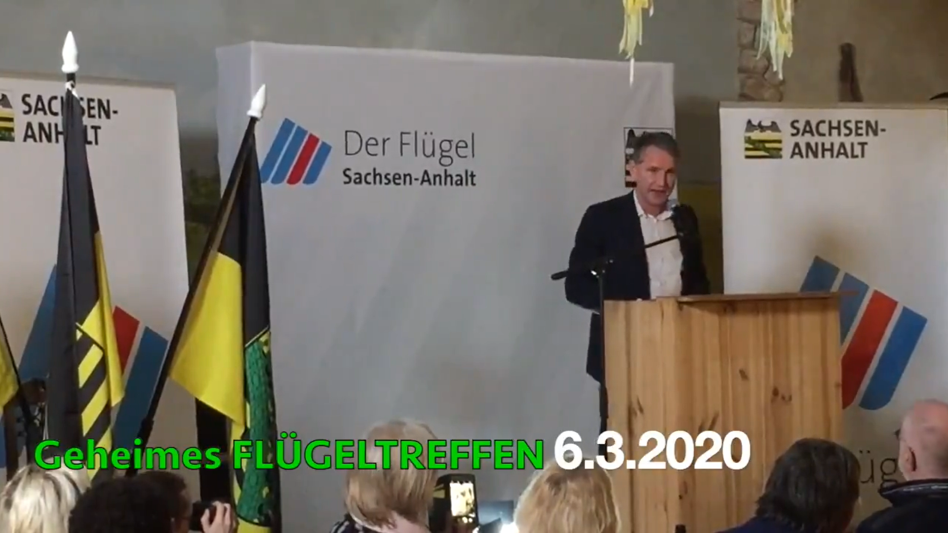 Vermutet wird, dass am Freitag, den 06.03.2020, sechs Tage bevor „Der Flügel“ vom Verfassungsschutz offiziell als eine „erwiesen extremistische Bestrebung“ eingestuft wurde, in Schnellroda ein Treffen des “Flügels” stattfand. In Schnellroda befindet sich das ehemalige Rittergut von Götz Kubitschek, der als Kopf und Vordenker der Neuen Rechten (Radikale und Extremisten) und als enger Vertrauter von Höcke gilt.