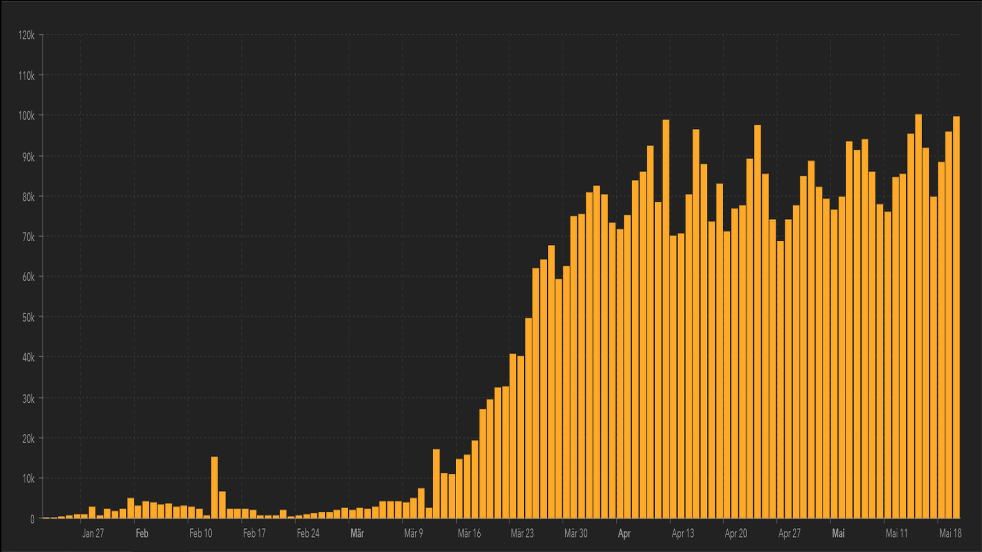 Von Jürgen Fritz, Do. 21. Mai 2020, Titelbild: Johns Hopkins University-Screenshot