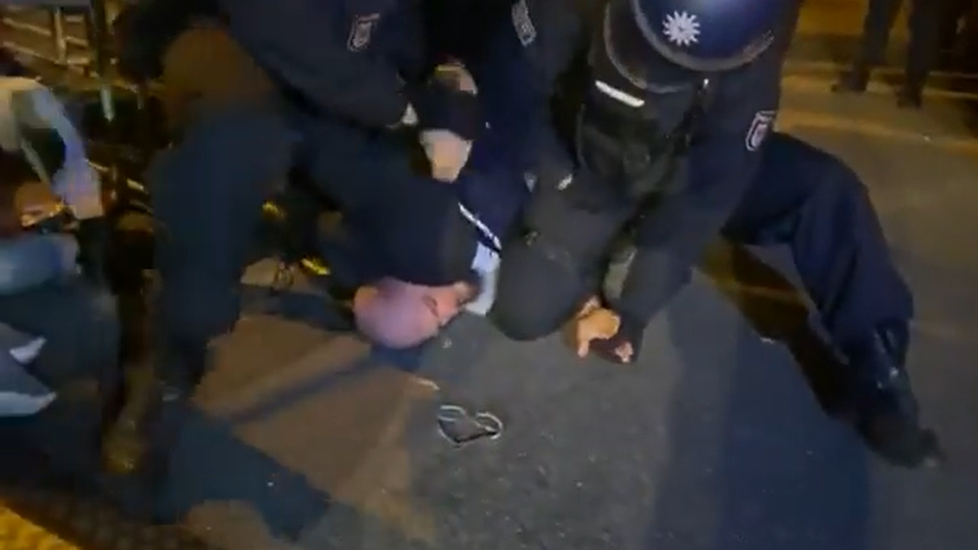 Als er selbst die Szene filme, sei er – obschon er seinen Presseausweis vor sich hielt und sich als Pressevertreter explizit zu erkennen gegeben habe – zunächst „weggeschupst“ und dann meterweit weggezerrt worden. Sprich er wurde in seiner Berichterstandung massiv behindert – und zwar von Berliner Polizeibeamten. Hier sein Livebericht aus der Nacht: