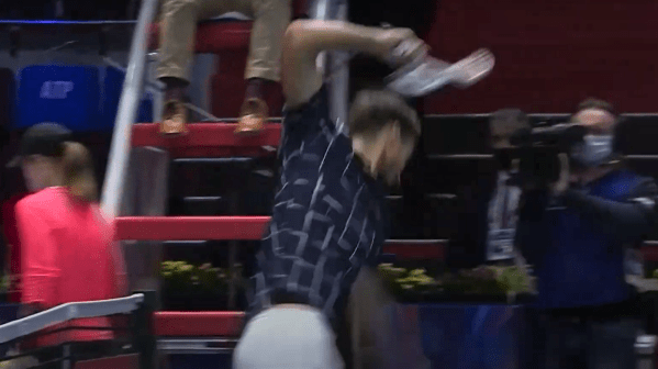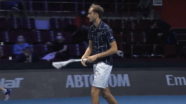 Damit ist der Titelverteidiger von St. Petersburg bereits in Runde zwei ausgeschieden. Anschließend zertrümmerte Medvedev seinen Schläger. Direkt nach dem letzten gespielten Punkt schlug er diesen bereits mit voller Wucht auf den Boden und zertrümmerte ihn dabei. Nach der Gratulation an Opelka zerhackte er ihn dann noch weiter.