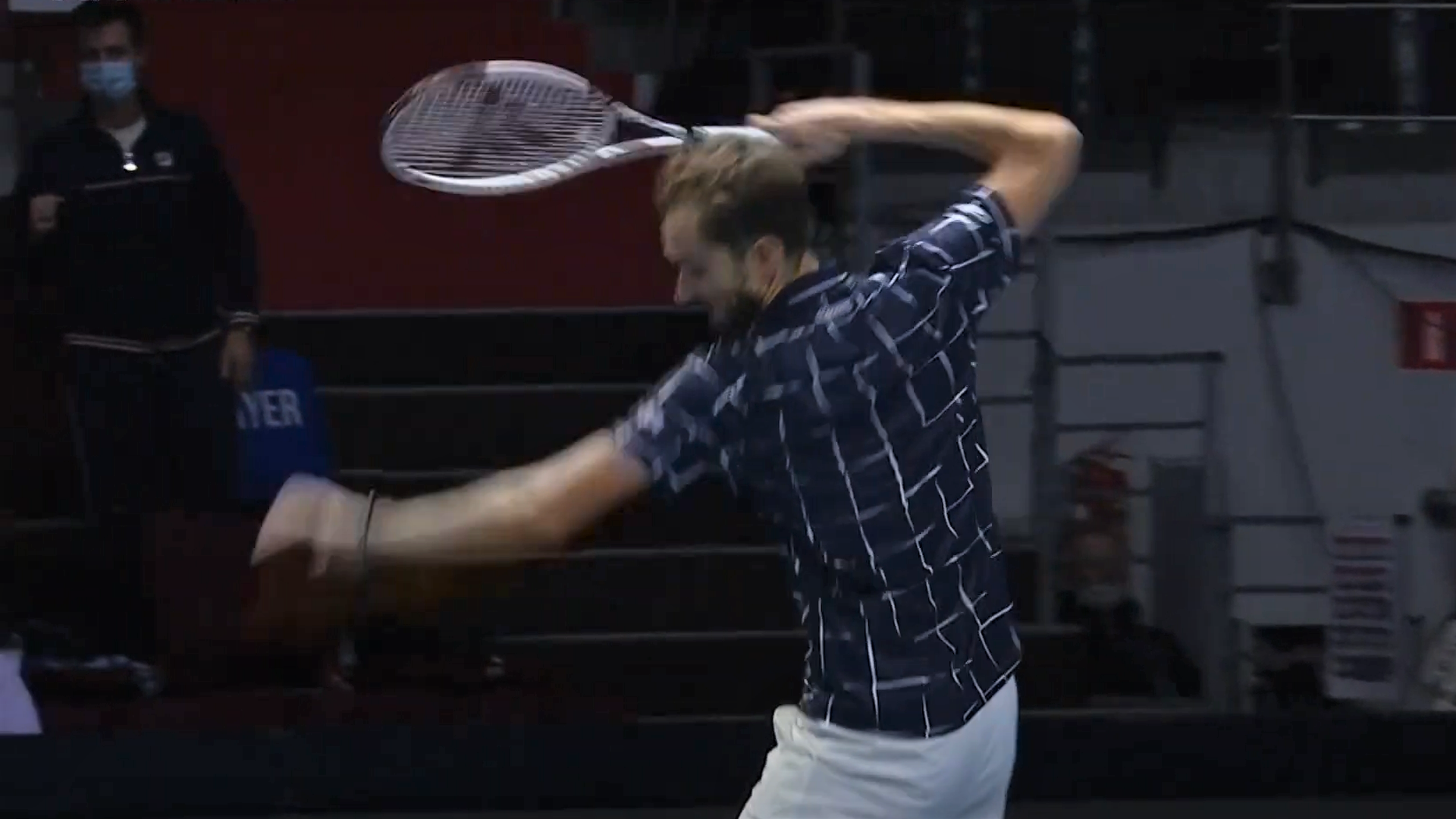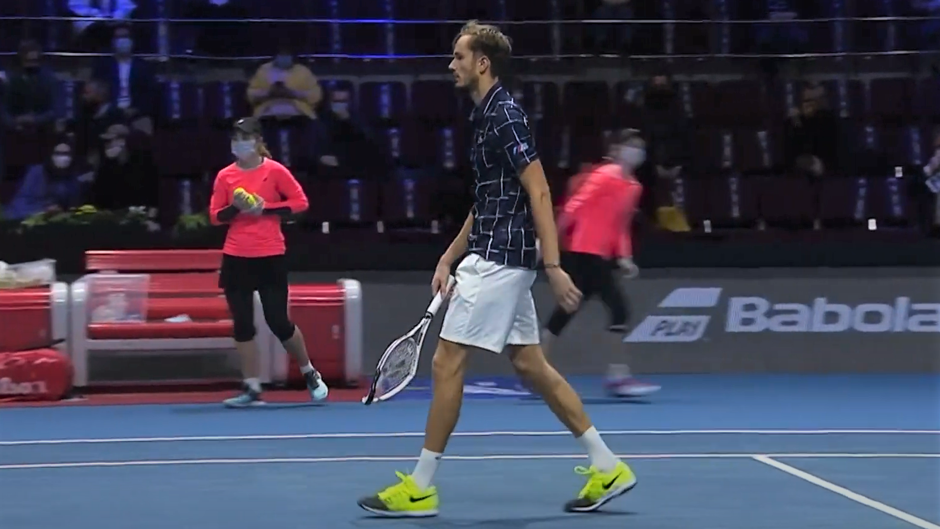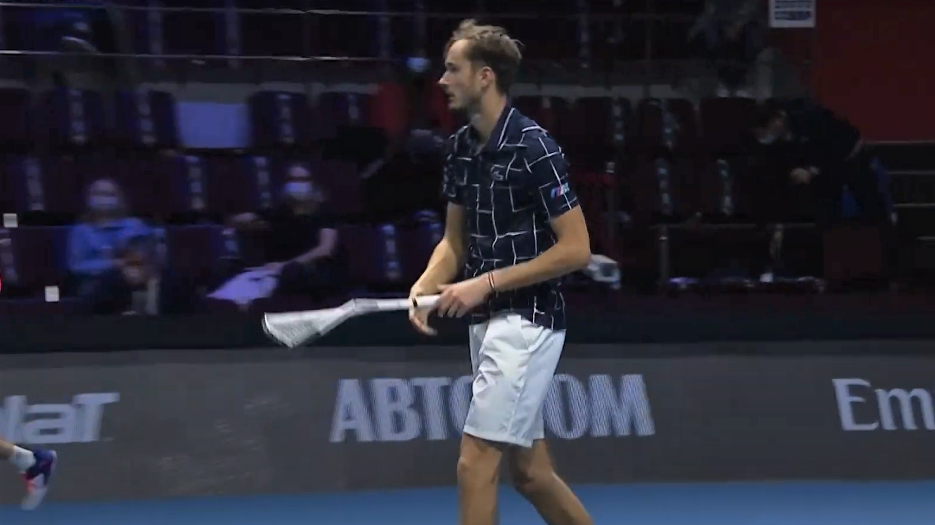 Damit ist der Titelverteidiger von St. Petersburg bereits in Runde zwei ausgeschieden. Anschließend zertrümmerte Medvedev seinen Schläger. Direkt nach dem letzten gespielten Punkt schlug er diesen bereits mit voller Wucht auf den Boden und zertrümmerte ihn dabei. Nach der Gratulation an Opelka zerhackte er ihn dann noch weiter.
