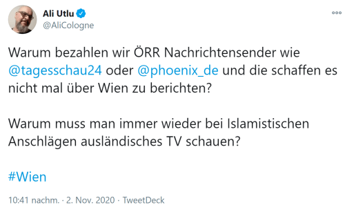 Deutsche M-Medien berichteten am Montagabend wieder maximal rudimentär, wie meist bei islamistischen Anschlägen