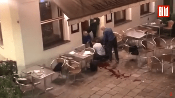 Auf dem Video unten ist unter anderem der mutmaßliche zweite Attentäter zu sehen, wie er Schüsse abfeuert. Ein anderes Video zeigt eine große Blutlache vor einem Restaurant.