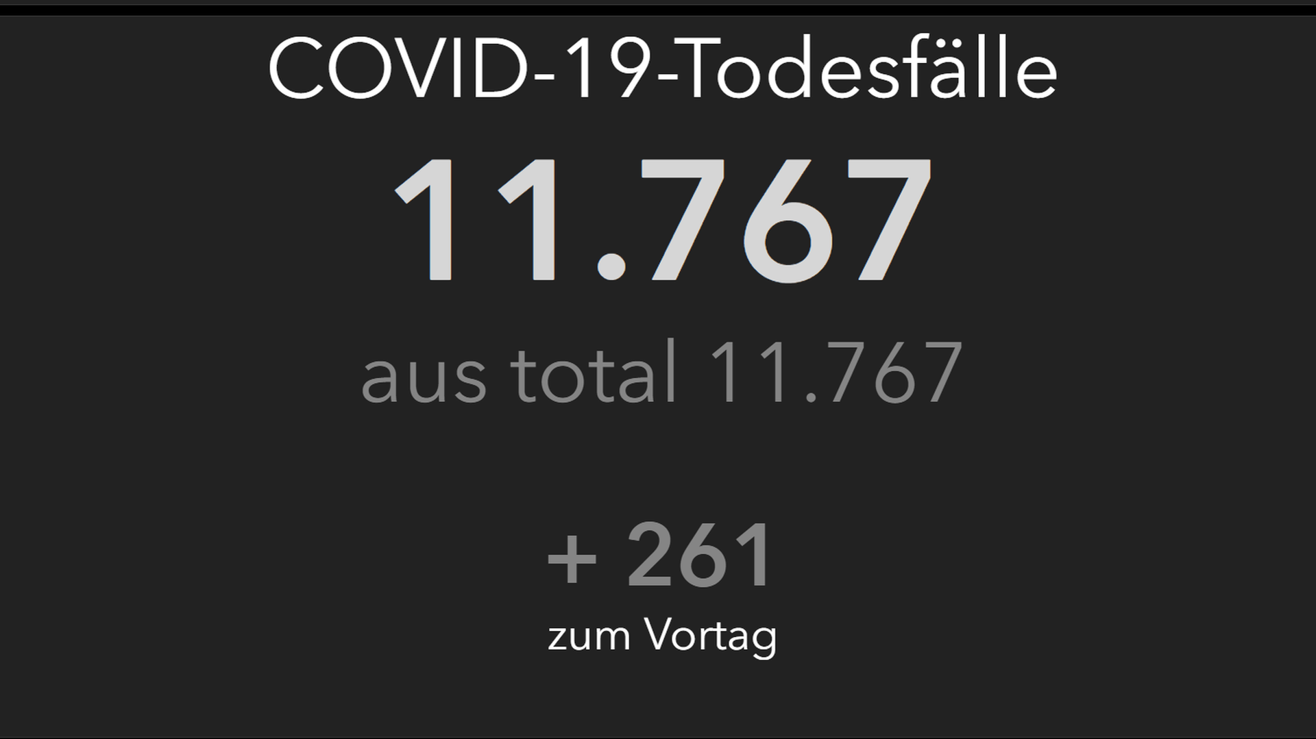 Insgesamt sind inzwischen ca. 11.800 Menschen in Deutschland an COVID-19 verstorben. Mehr als 86 Prozent der statistisch als COVID-19-Todesfälle Erfassten sterben direkt an Covid-19, wie eine Studie des Deutschen Pathologenverbandes schon vor Monaten feststellte. Hinzu kommen die Toten, die tatsächlich an COVID-19 starben, die aber in keiner Statistik auftauchen, weil sie entweder zuhause oder in einem Alten- oder Pflegeheim starben, ohne je auf SARS-CoV-2 getestet worden zu sein, so dass sie auch nie auf einem Obduktionstisch landen, sondern einfach beerdigt werden, ohne statistisch erfasst zu werden.
