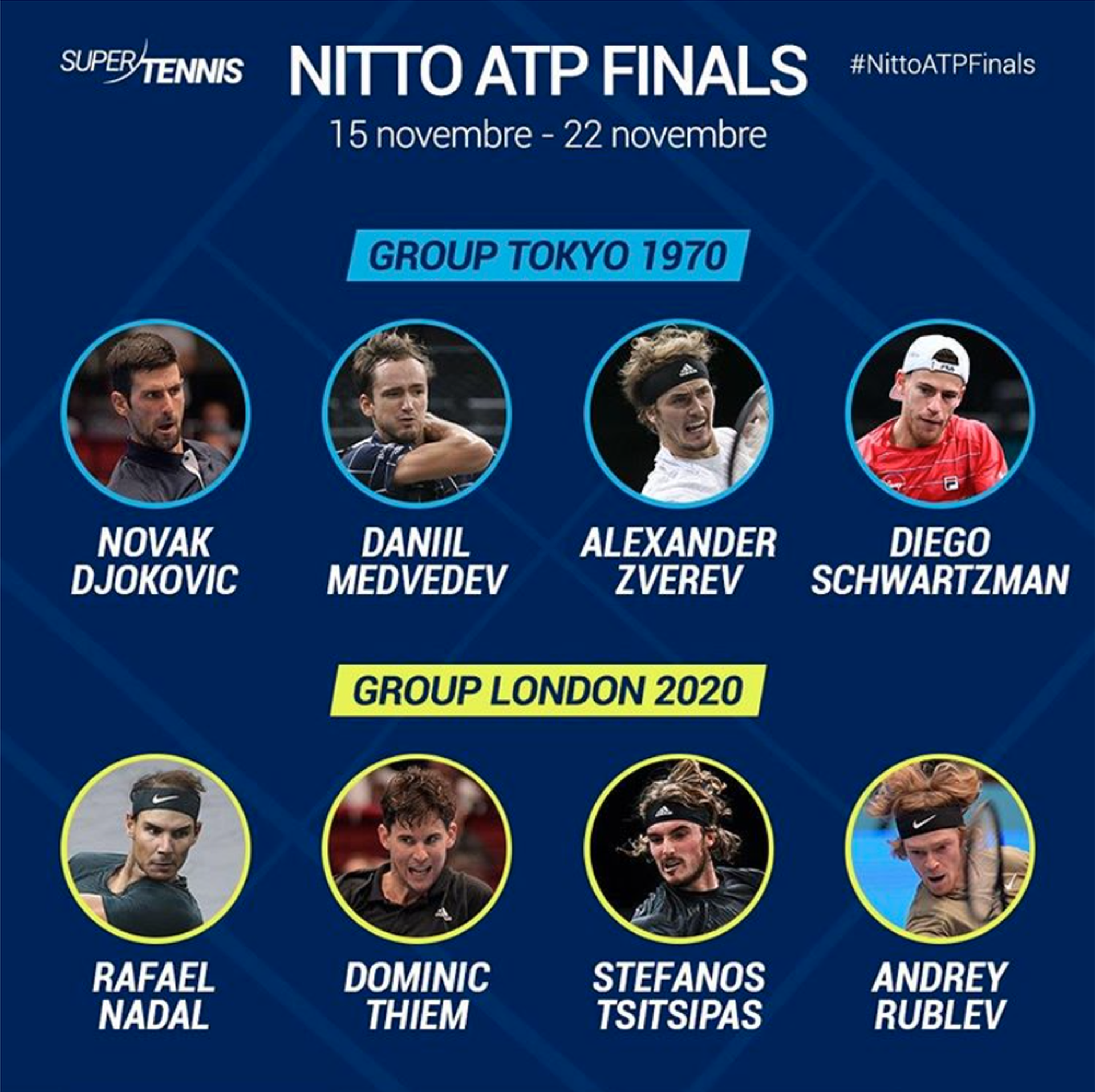 Roger Federer wäre wegen der Corona-Sonderregelung und seinen Ergebnissen ab März 2019, die dieses Jahr ausnahmsweise mit gewertet werden, eigentlich auch qualifiziert (statt Schwartzman), ist aber schon seit Ende Januar verletzt und hat daher frühzeitig abgesagt, wird also keinen siebten Titel holen können. Sein letzter Turniersieg bei den ATP Finals liegt aber auch schon 9 Jahre zurück, sein letzte Endspielteilnahme fünf Jahre. Federer ist inzwischen 39, hat aber bereits sein Comeback für 2021 angekündigt.