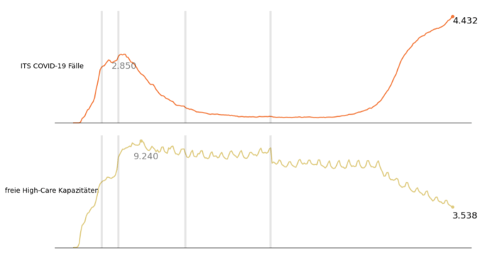 Die Zahl der COVID-19-Erkrankten, die intensivmedizinisch behandelt werden müssen, steigt erstmals auf über 4.400