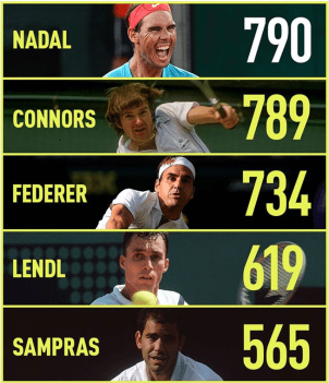 Doch damit noch nicht genug. Rafa schaffte etwas Weiteres, was weder Connors noch Federer gelang: Er gewann das 17. Jahr in Folge jedes Jahr mindestens ein Grand Slam- oder ATP Turnier. Federer und Djokovic bringen es auf 15 Jahre, Lendl 14, Connors 13 Jahre in Folge.