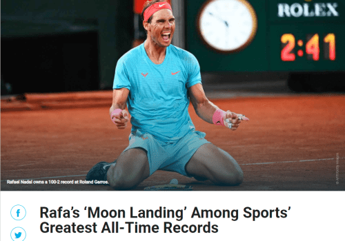 Damit stellte der größte Sandplatzspieler aller Zeiten dieses Jahr den ewigen Rekord von Roger Federer, des größten Rasenspielers aller Zeiten und fünfmaligen Weltsportler des Jahres, ein und liegt nun zusammen mit dem Schweizer in dieser wichtigsten aller Kategorien auf Rang 1 der ewigen Bestenliste.