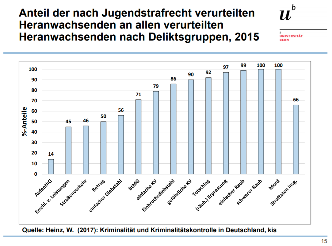 Bei gefährlicher Körperverletzung, Totschlag, Raub und Mord werden junge Erwachsene zu 90 bis 100 Prozent als Jugendliche bestraft