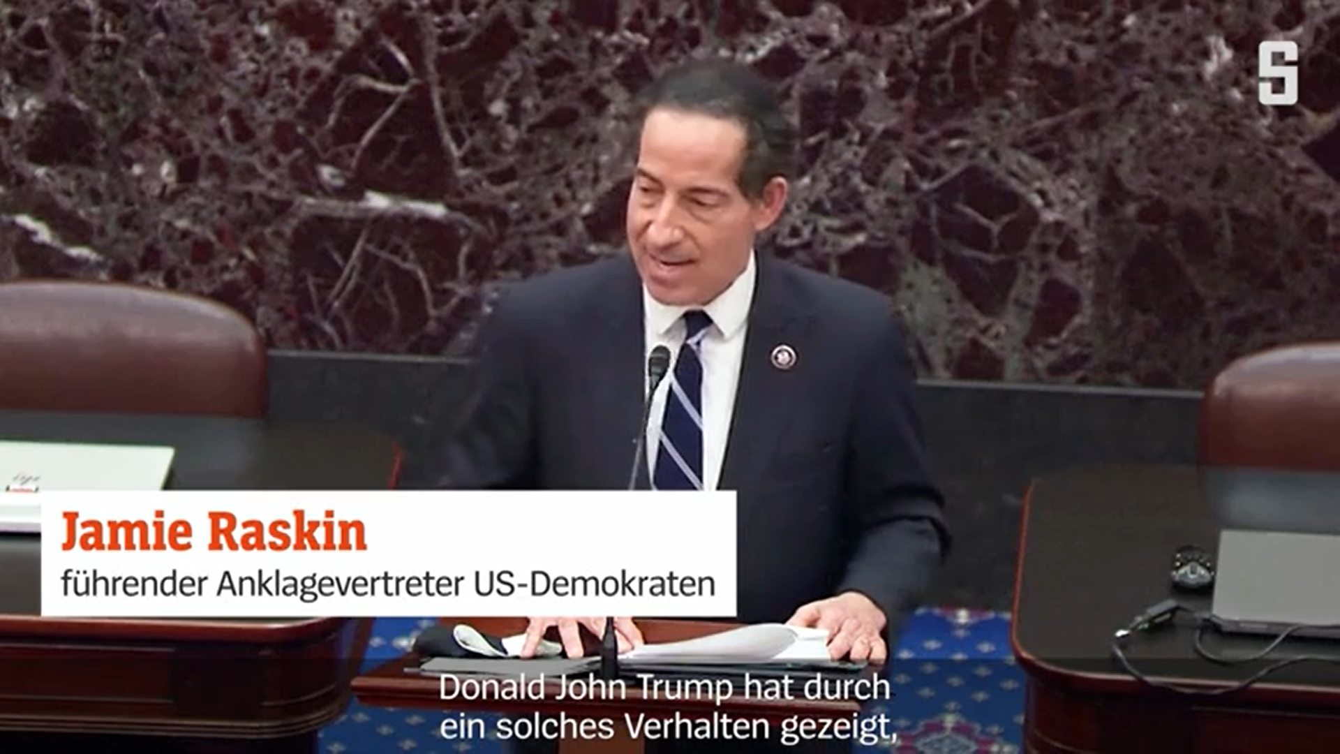Jamie Raskin trat am Montagabend, den 25. Januar, ans Rednerpult des Senats und verlas fünf Minuten lang die vierseitige Anklageschrift. Der frühere Professor für Verfassungsrecht ist der Hauptverfasser der Anklage. Auf Basis seines Entwurfs, den er schon am 6. Januar aufgesetzt haben soll, hat das Repräsentantenhaus am 13. Januar, genau eine Woche nach dem Aufruhr, das Amtsenthebungsverfahren beschlossen. Es ist erst das fünften Impeachementverfahren in der Geschichte der Vereinigten Staaten und es ist das erste Mal, dass es sich gegen einen Präsidenten richtet, gegen den zuvor bereits ein solches Verfahren durchgeführt wurde.