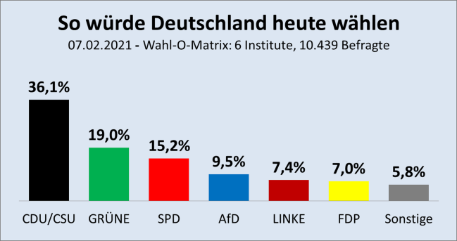 Da die SPD kaum ein viertes Mal in fünf Legislaturperioden in eine schwarz-rote Koalition eintreten wollen wird, welche sie immer mehr verzwergt hat, deutet weiter alles auf eine schwarz-grüne Bundesregierung hin nach der Bundestagswahl am 26. September 2021. Und wie sehen die Wähler ein solch schwarz-grünes Bündnis, insbesondere mit einem Kanzler Markus Söder? Dazu gleich mehr.