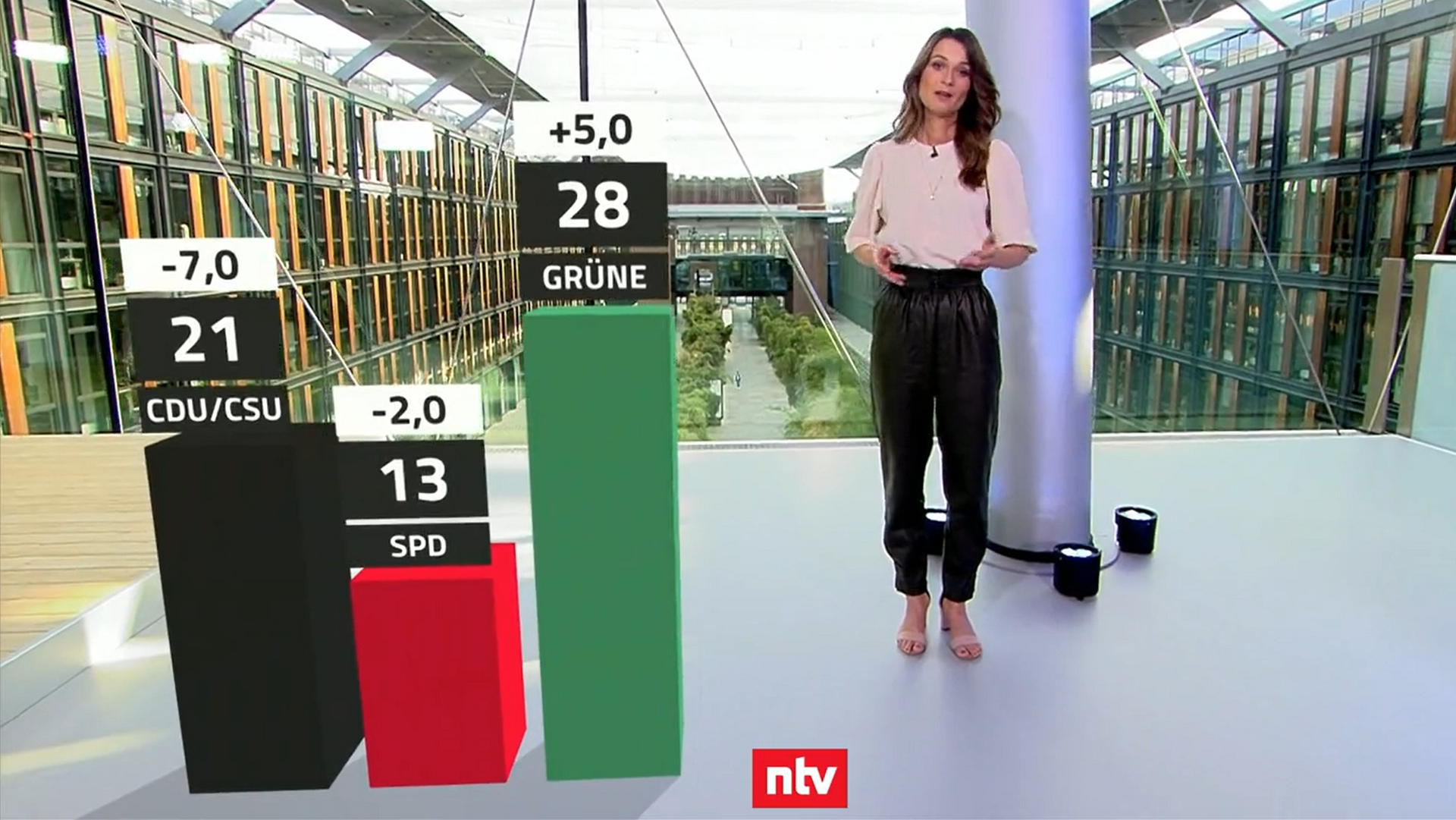 Bei Forsa fällt die Union um 7 Punkte, die Grünen steigen um 5 Punkte