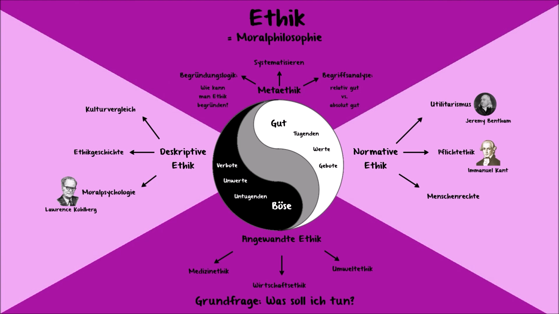 Im Titelbild sehen Sie einen ersten, nicht perfekten, aber hilfreichen Überblick, quasi eine Landkarte über das Gebiet der Ethik, der Moralphilosophie, der Wissenschaft, welche die Moral zum Untersuchungsgegenstand hat, also