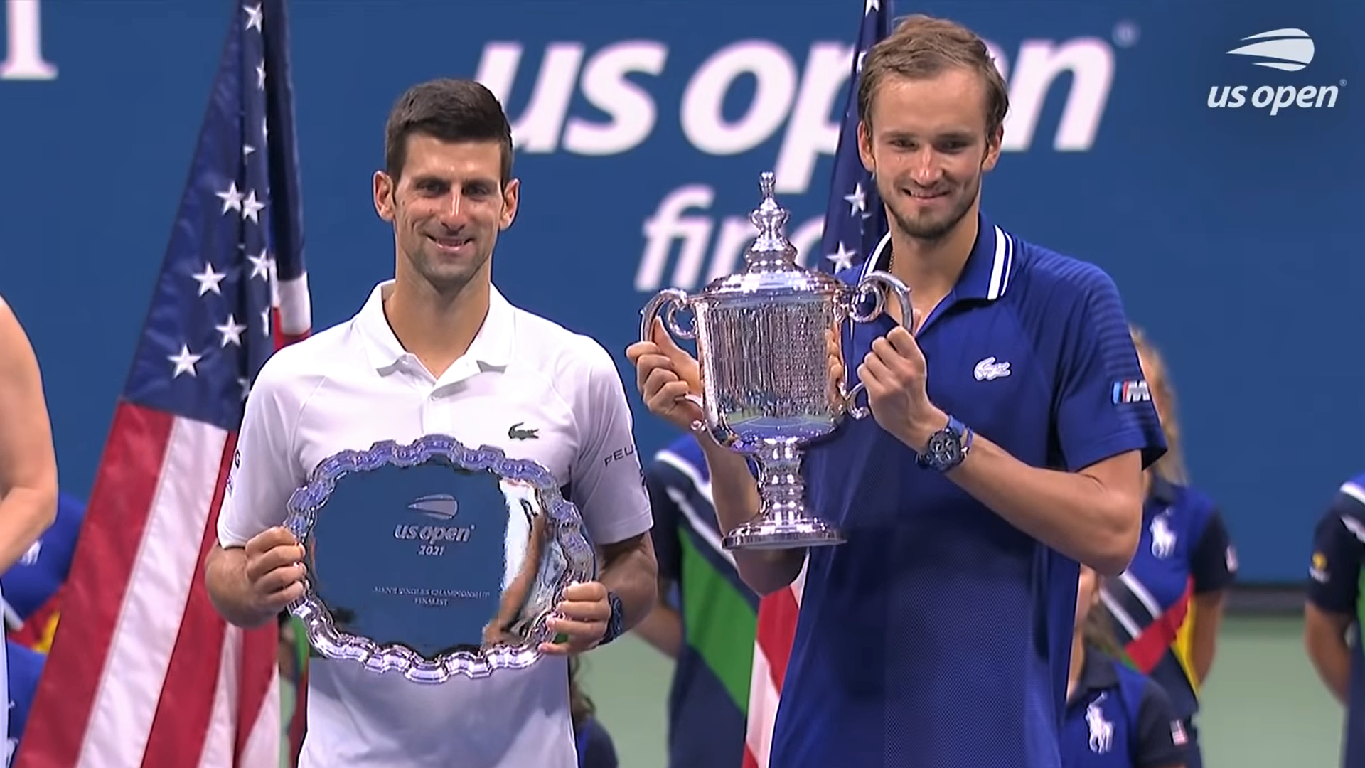 Novak Djokovic was just one win away from one of the greatest sporting achievements of all time: the Grand Slam, all four Major titles in one calendar year. The Serb had achieved something no player had managed since Rod Laver in 1969, winning the first three Grand Slam tournaments of the year, first the Australian Open in February with a final victory over Daniil Medvedev, then Roland Garros in June with a true triumph in the final over 13-time French Open champion Rafael Nadal, and finally Wimbledon in July with a final victory over Matteo Berrittini. Now Djokovic and Medvedev faced each other again in the final, as they did in Melbourne in February. So the Serb went into this all-important match, arguably the most important of his entire career, with a 27-0 record this year in Grand Slam tournaments.
