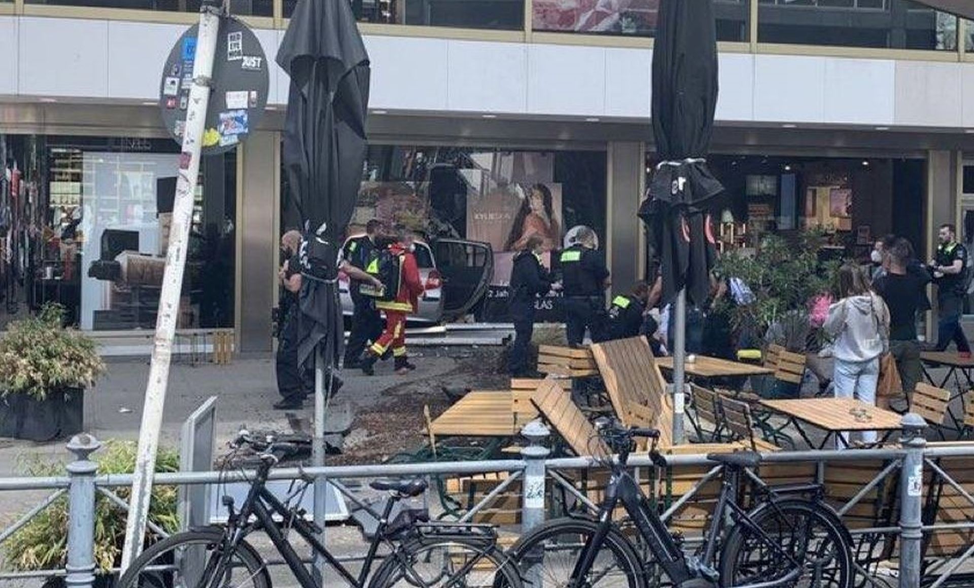 In Berlin-Charlottenburg kam es heute gegen 10:30 Uhr zu einem schrecklichen Vorfall. Ein Mann raste mit einem Renault Clio auf den Gehweg, dort in eine Menschenmenge hinein, erfasste mehr als ein Dutzend Menschen, fuhr dann wieder auf die Fahrbahn und über 200 Meter weiter in ein Geschäft hinein. Eine Person verstarb direkt vor Ort, viele weitere wurden verletzt, zum Teil lebensgefährlich.