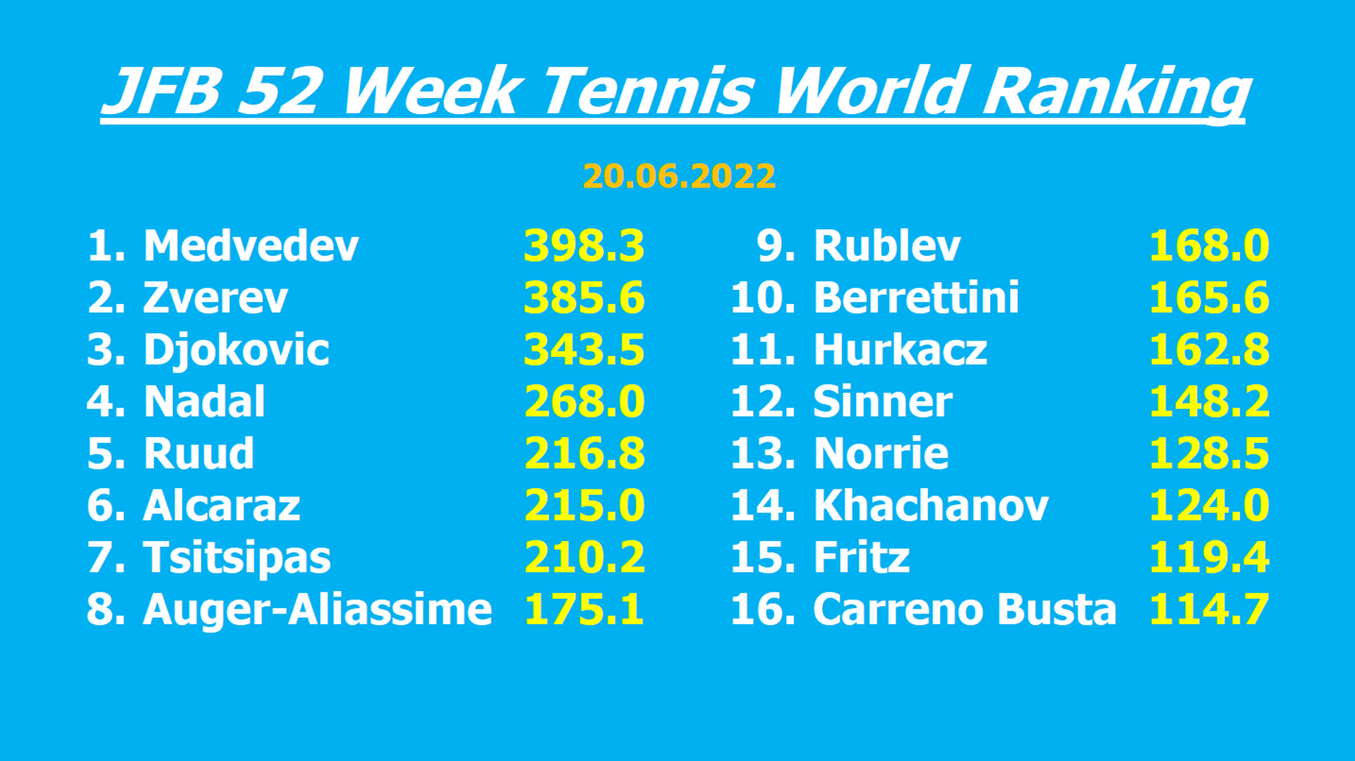 Here you can read how the JFB 52 Week Tennis World Ranking works