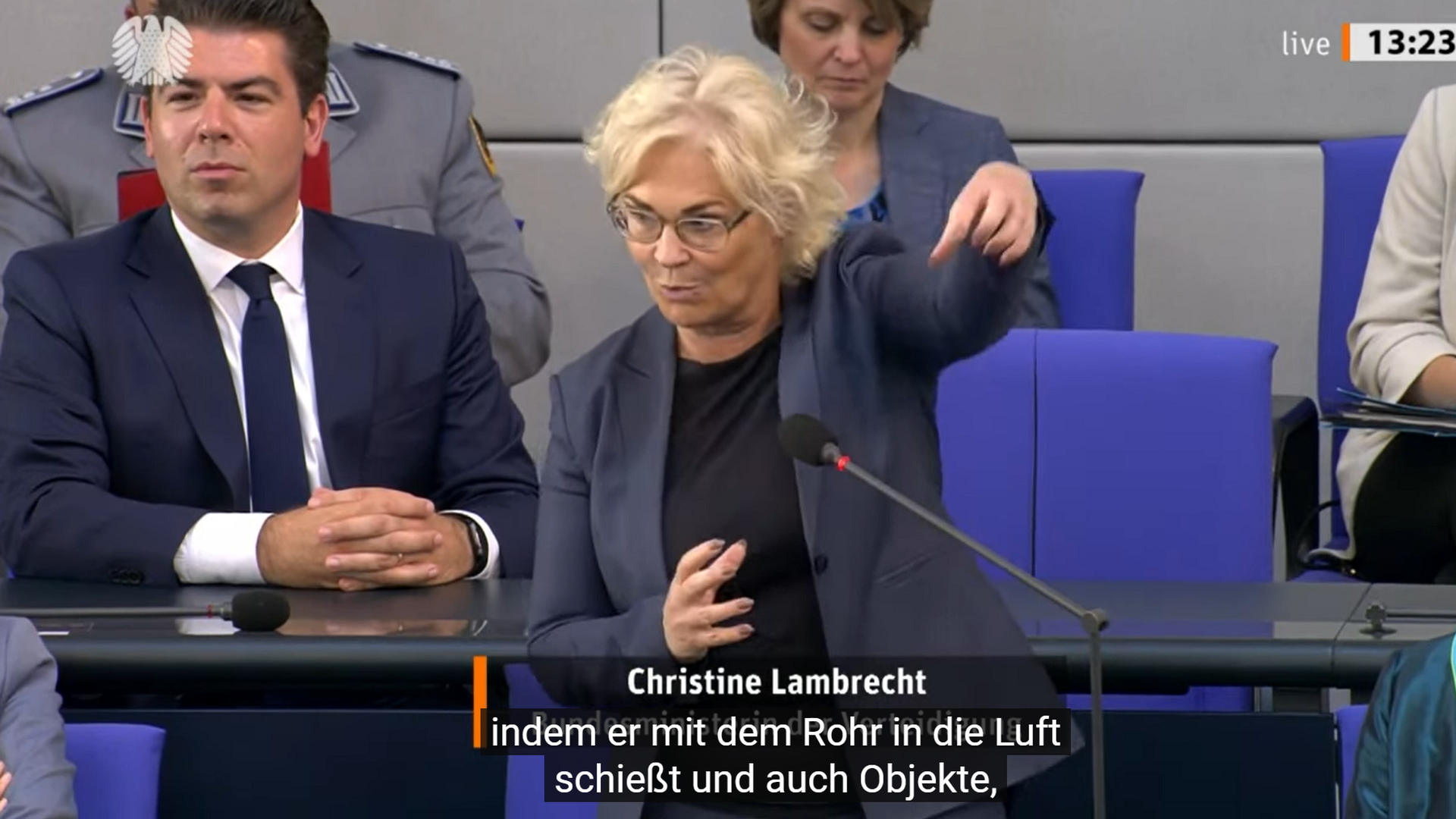 Christine Lambrecht (SPD), ihres Zeichens Bundesverteidigungsministerin, also die wichtigste Person in Deutschland, was die äußere Sicherheit unseres Landes anbelangt im Deutschen Bundestag wörtlich: