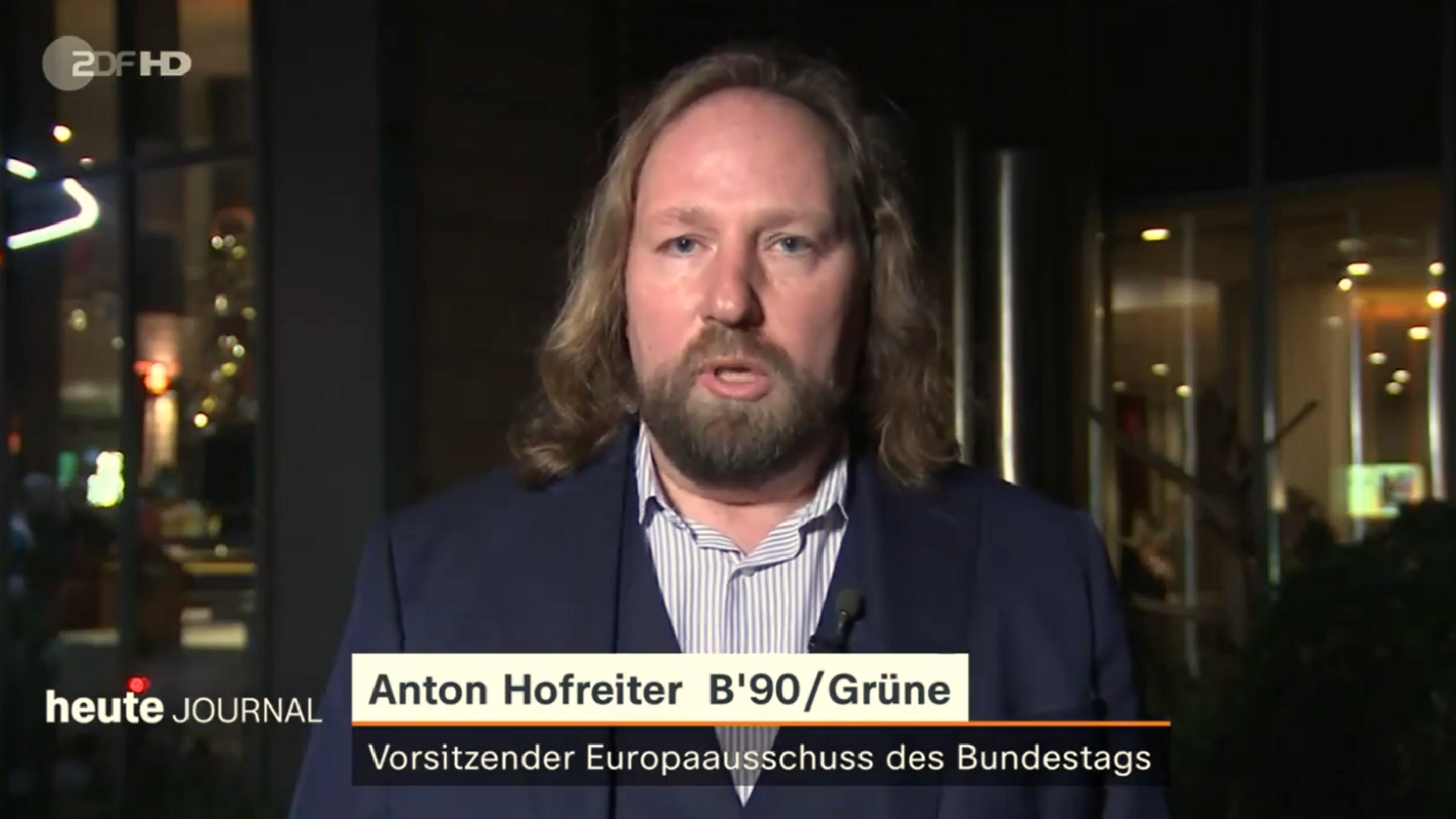 Toni Hofreiter (2013 bis 2021 einer von zwei Vorsitzenden der grünen Bundestagsfraktion, seit 2021 Vorsitzender des Ausschusses für die Angelegenheiten der Europäischen Union) äußerte sich gestern Abend im ZDF-Interview wie folgt über Bundeskanzler Olaf Scholz (SPD):
