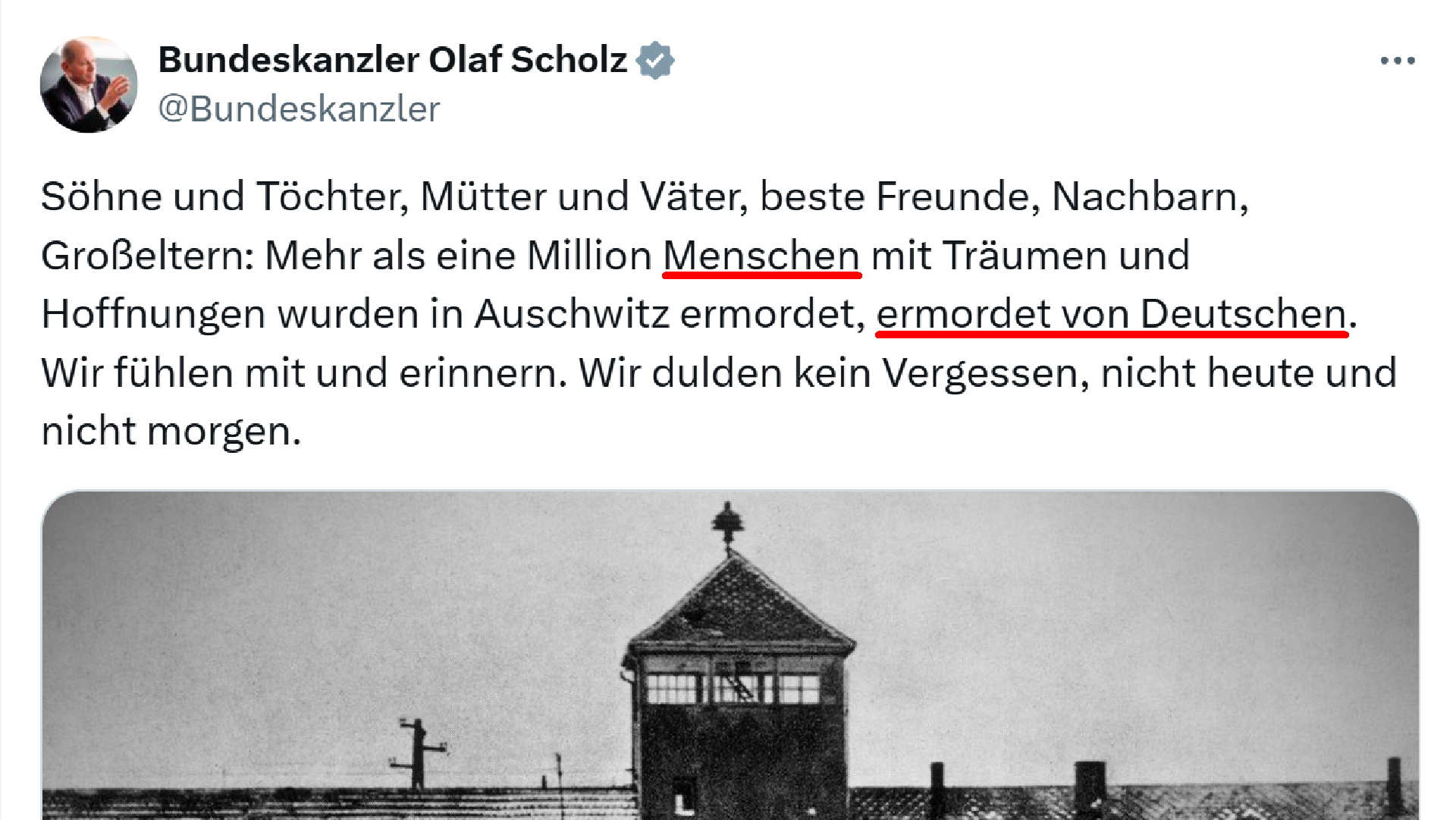 III. Scholz und die SPD nennen die Juden bei ihrem Auschwitz-Posting schon gar nicht mehr