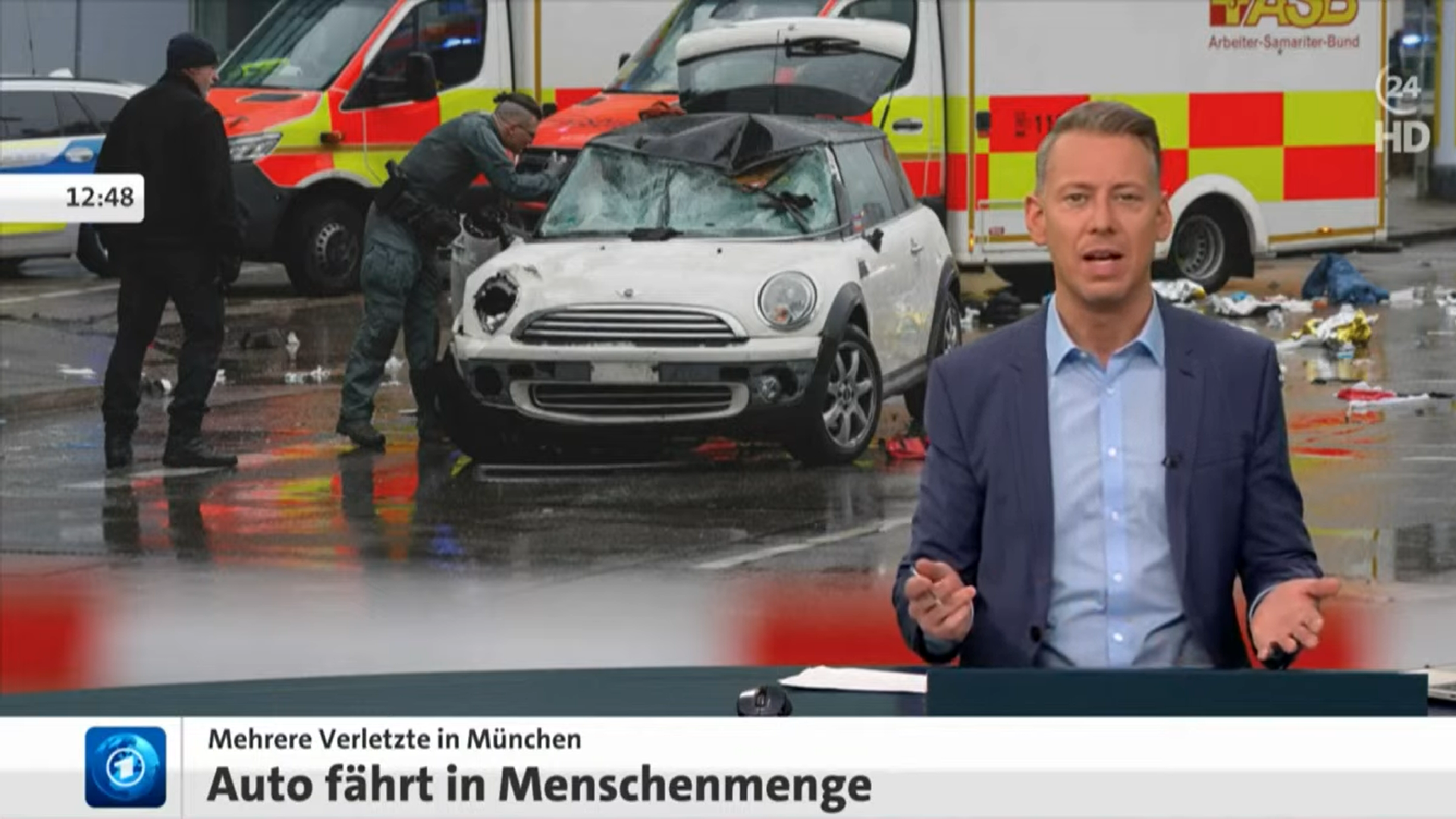 Einen Tag vor Beginn der Münchner Sicherheitskonferenz hat ein 24-jähriger afghanischer geduldeter Scheinasylant einen Mini Cooper gezielt in eine Menschenmenge gelenkt. Es soll mindestens 36 zum Teil Schwerstverletzte geben. Der Fahrer wurde sofort festgenommen. Ein zweijähriges Mädchen und seine Mutter erlagen ihren schweren Verletzungen.