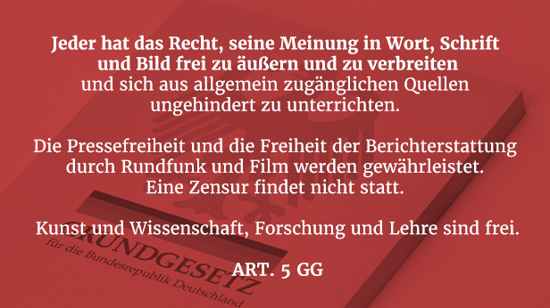 Linksradikale Sozialisten (die mehrfach umbenannte SED, aktueller Name: „Die Linke“, Grüne, SPD und auch Teile von CDU/CSU) greifen die Grund- und Menschenrechte immer wieder an, vor allen Dingen die Redefreiheit. Und das seit vielen, vielen Jahren, da sie nach der ersten Gewalt (Parlamente), der zweiten Gewalt (Regierungen), der dritten Gewalt (Gerichte und Staatsanwaltschaften) und der vierten Gewalt (Massenmedien), nun auch die fünfte Gewalt (das Internet, die freie, nicht gelenkte Kommunikation der Bürger untereinander) unter ihre Kontrolle bringen möchten, insbesondere mit ihrer „Hass und Hetze“-Masche. Hierbei wird mit übelsten Verdrehungen und völlig unsauberen Begrifflichkeiten gearbeitet.