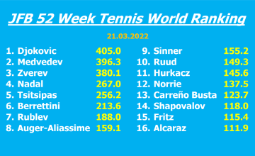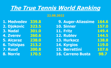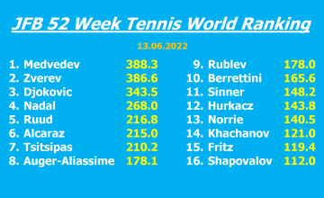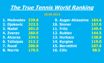 (Jürgen Fritz, 19.09.2022) Novak Djokovic did not want to play for Serbia in the Davis Cup this year. The Wimbledon winner, who played very successfully in the Davis Cup last year, thus loses quite a few points and falls back to fourth place. Medvedev and Rublev also lose many Davis Cup points from last year. Casper Ruud moves up to position three.