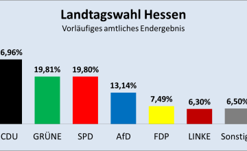 (Jürgen Fritz, 29.10.2018) Die SPD fällt von über 30 auf unter 20 Prozent und sogar ganz knapp hinter Die Grünen zurück. Fast 11,4 Punkte Verluste für die CDU bei unter 8,7 Punkte Gewinne für die Grünen. Nicht einmal 46,8 Prozent stimmten für die amtierende schwarz-grüne Regierung und trotzdem haben sie im neuen hessischen Landtag eine hauchdünne Mehrheit von 69 gegen 68 Sitze. Wie ist das möglich und welche Auswirkungen hat diese Wahl auf Berlin?