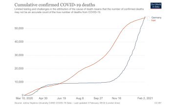 (Jürgen Fritz, 03.02.2021) Die Zahl der Menschen, die in Deutschland infolge einer Infektion mit SARS-CoV-2 verstorben sind, stieg inzwischen auf über 59.000. Damit haben wir auch den Iran überholt und gehören nun zu den Top-Ten der Welt bei den absoluten COVID-19-Todesfällen seit Beginn der Pandemie. Bezogen auf die Bevölkerungsgröße liegt Deutschland ebenfalls bereits im obersten Viertel und bei den Todesfällen 2021 sogar zur absoluten Spitzengruppe weltweit, ganz anders als beim Impfen.
