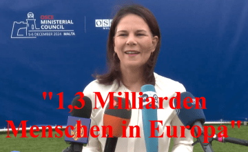 (Jürgen Fritz, 06.12,2024) Man muss es so deutlich sagen: Annalena Baerbock ist intellektuell nicht geeignet, Deutschland in der Welt als Außenministerin zu vertreten. Sie ist überhaupt intellektuell nicht geeignet, irgendein Ministeramt zu bekleiden. Auf dem OSZE-Außenministertreffen in Malta sprach die Grünen-Politikerin doch tatsächlich von „1,3 Milliarden Menschen in Europa“.