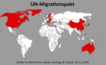 (Jürgen Fritz, 14.11.2018) Die Liste der Länder, die den sogenannten „Globalen Pakt für eine sichere, geordnete und regelmäßige Migration“ ablehnen oder in dieser Form nicht unterzeichnen wollen, wird immer länger. Hatten die USA im Dezember 2017 bereits die Beteiligung an der Erarbeitung des UN-Migrationspaktes negiert, so kamen und kommen inzwischen immer mehr Länder dazu, die zumindest starke Zweifel anmelden oder die Unterzeichnung sogar schon strikt ablehnen. Lesen Sie hier, wer dieses Machwerk unbedingt will und befürwortet und wer inzwischen deutlich auf Distanz geht, vor allem aber aus welchen Gründen.